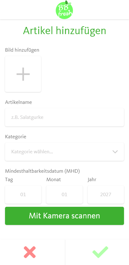 Die Anwendung BBFresh (Best Before Fresh) kann mithilfe der Kamera das Mindesthaltbarkeitsdatum von Lebensmitteln erkennen und diese nach Ablaufdatum in einer Liste sortieren. Die Produkte können bei Bedarf einer Einkaufsliste hinzugefügt werden. So kann die Verschwendung durch verdorbene Lebensmittel vorgebeugt werden.